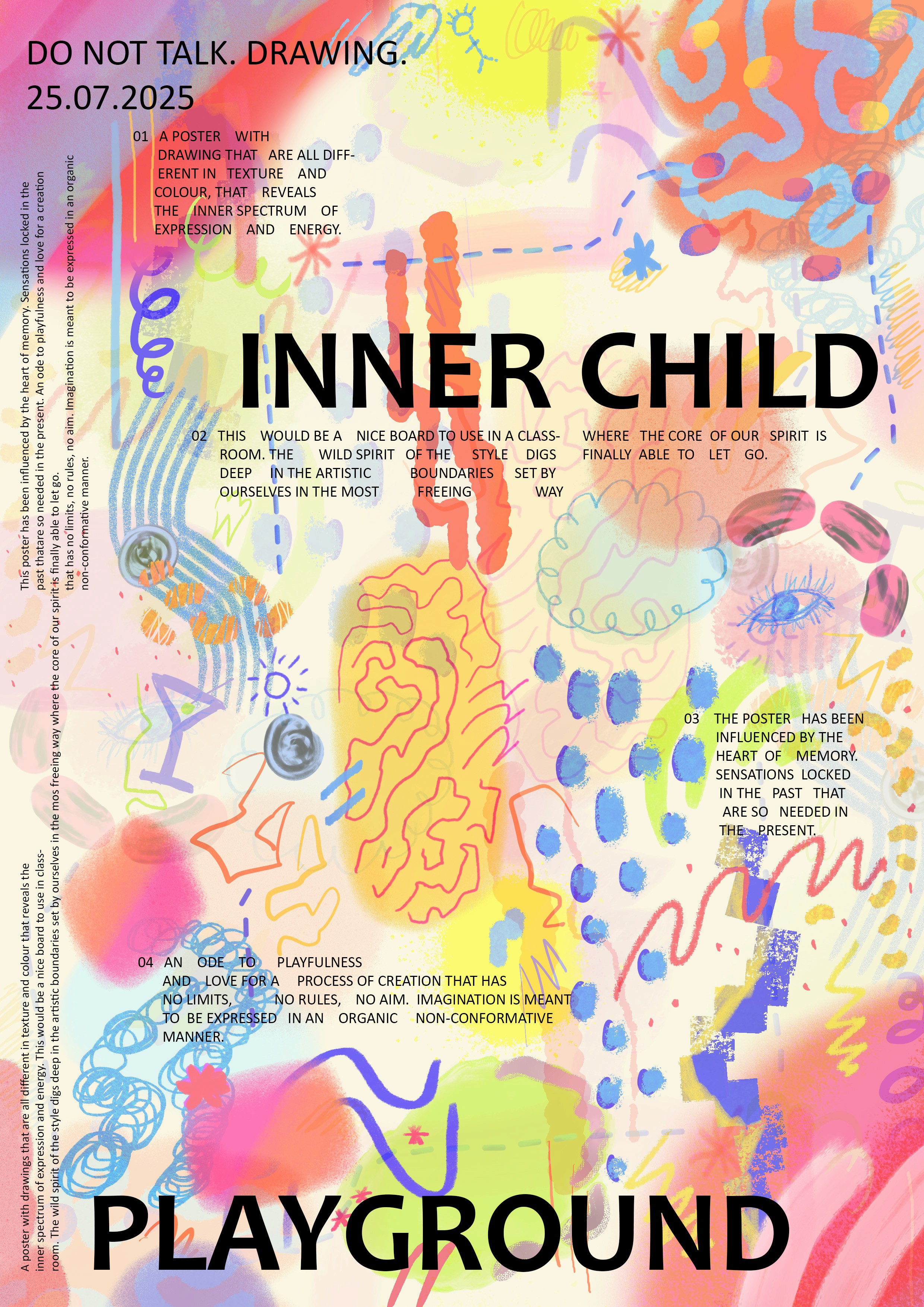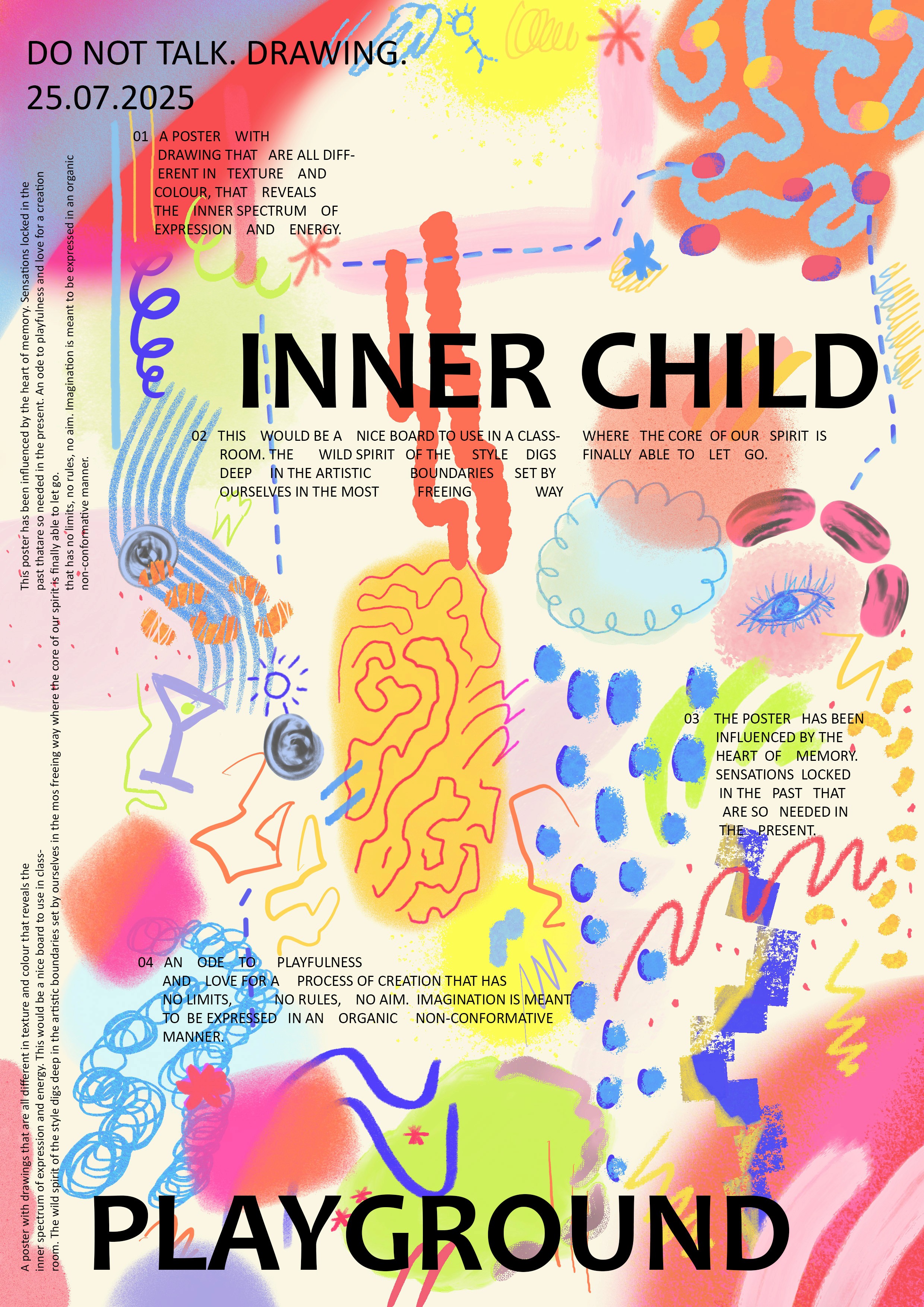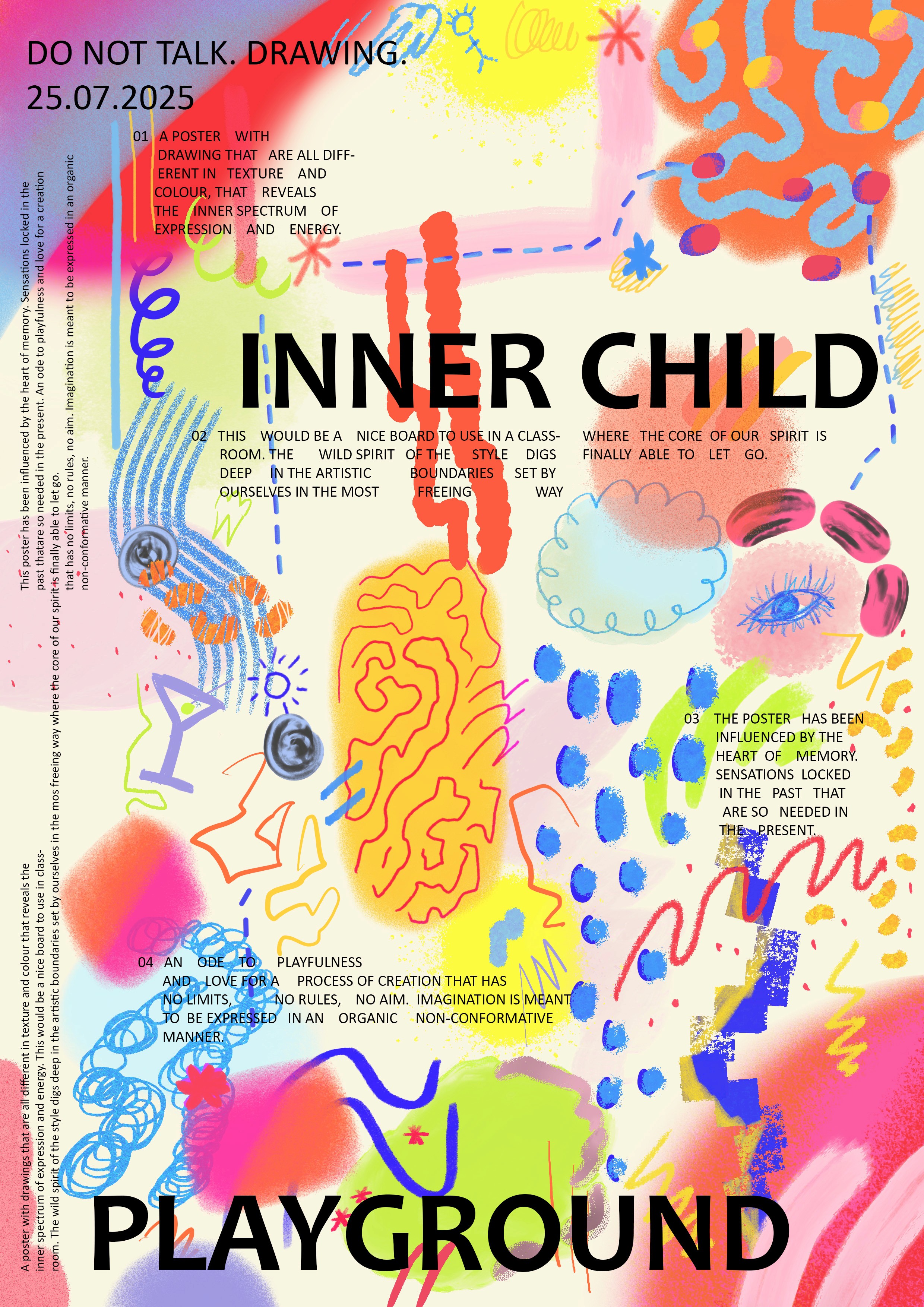 A poster exploring the concept of creating like a child - with no intended structure,