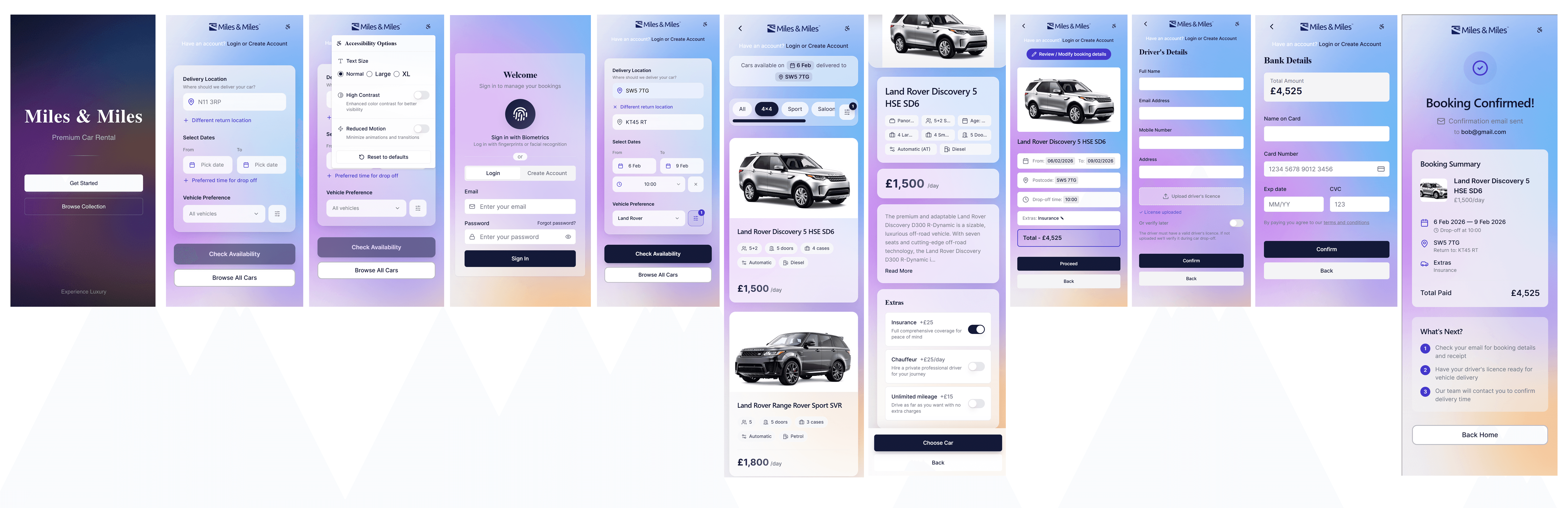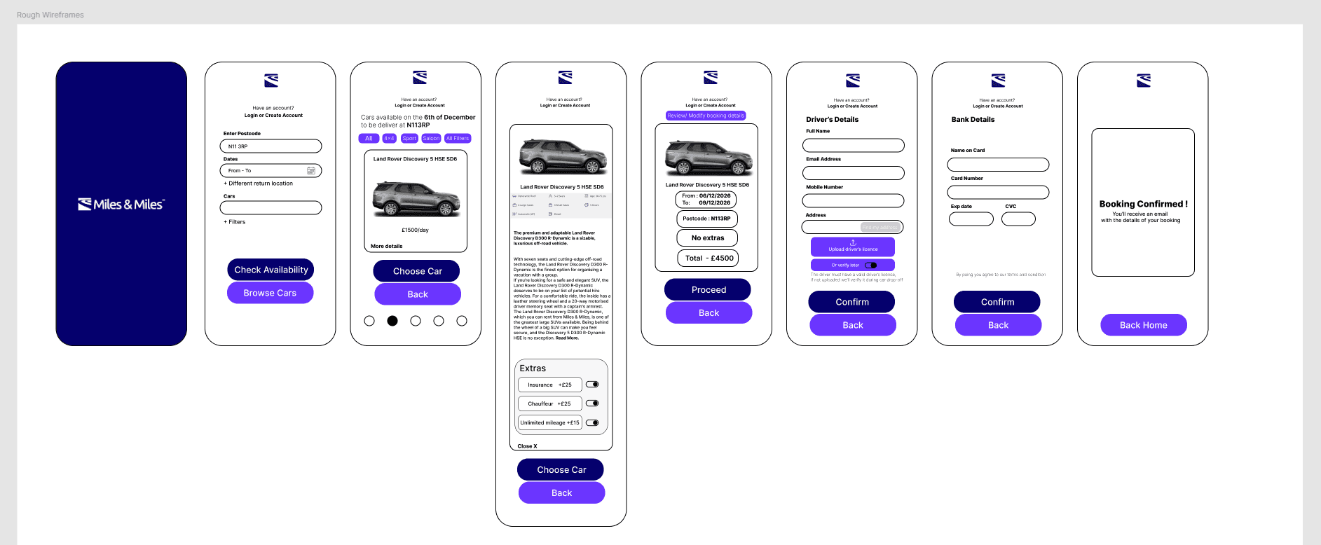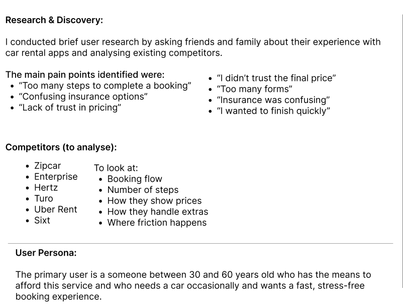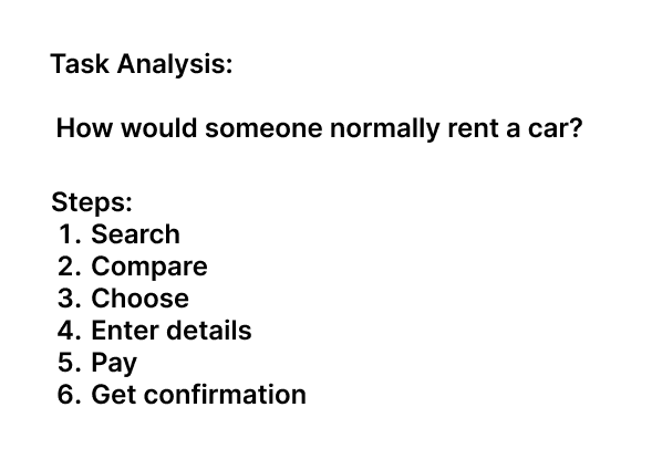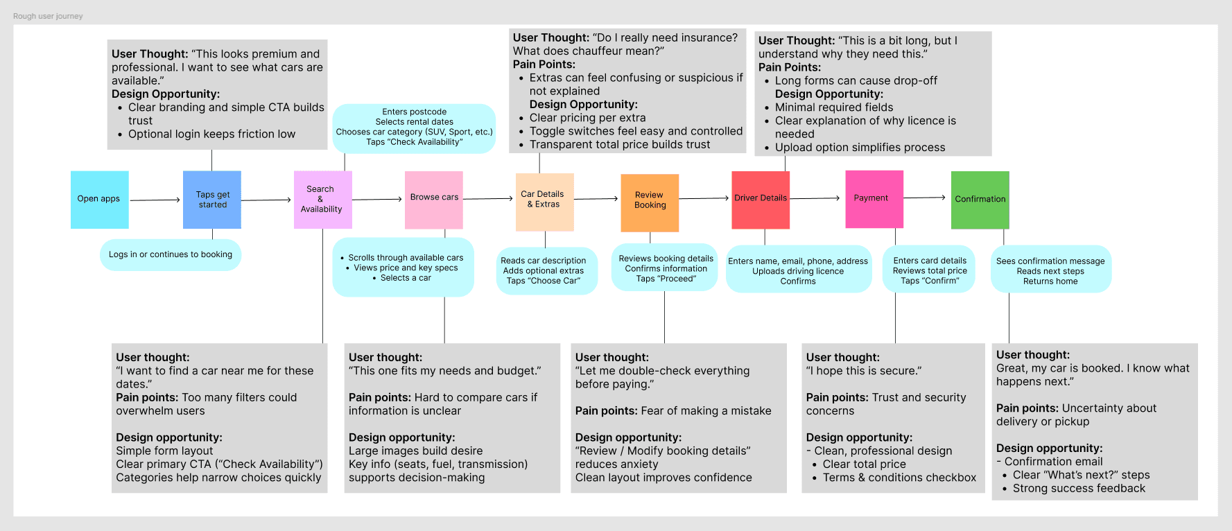 booking flow, from searching for a car to final confirmation,