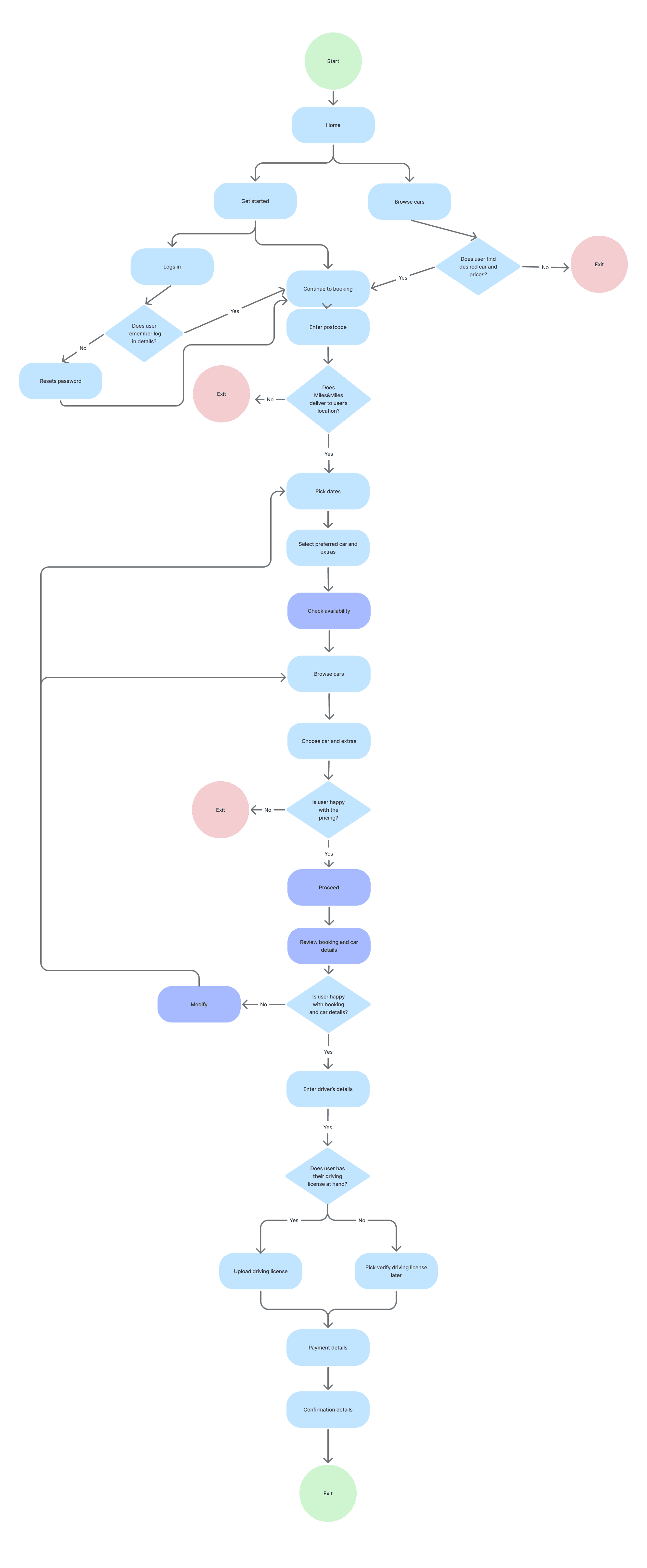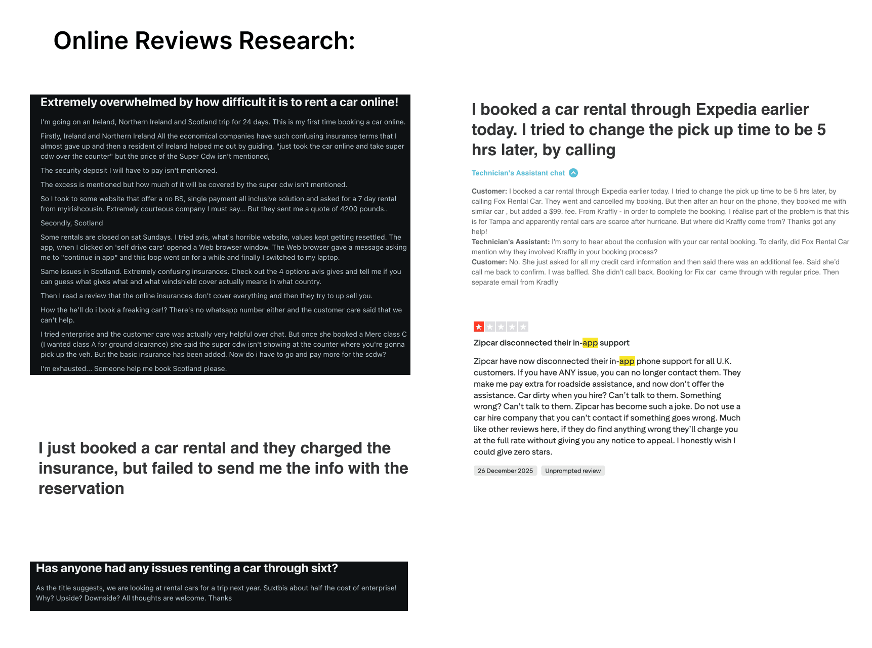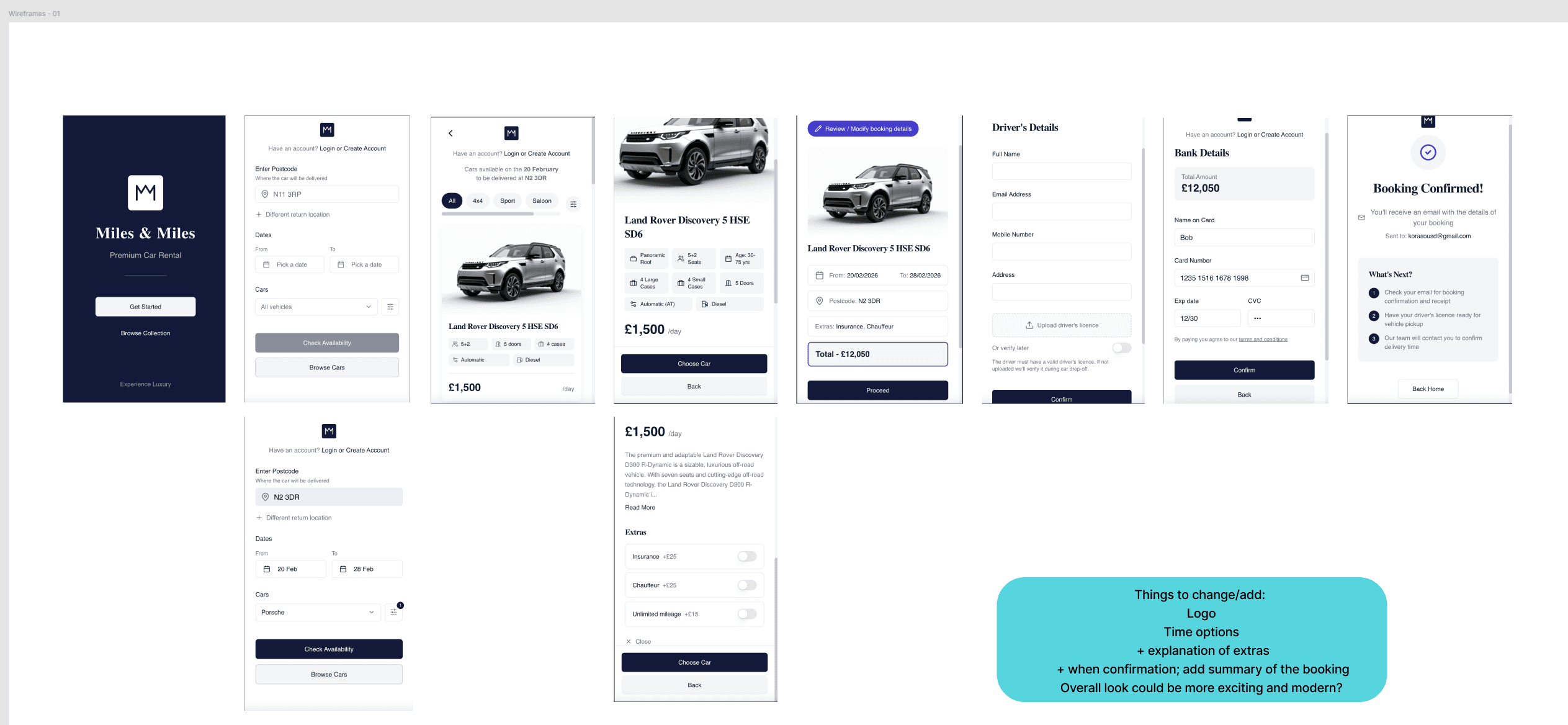 booking flow, from searching for a car to final confirmation,